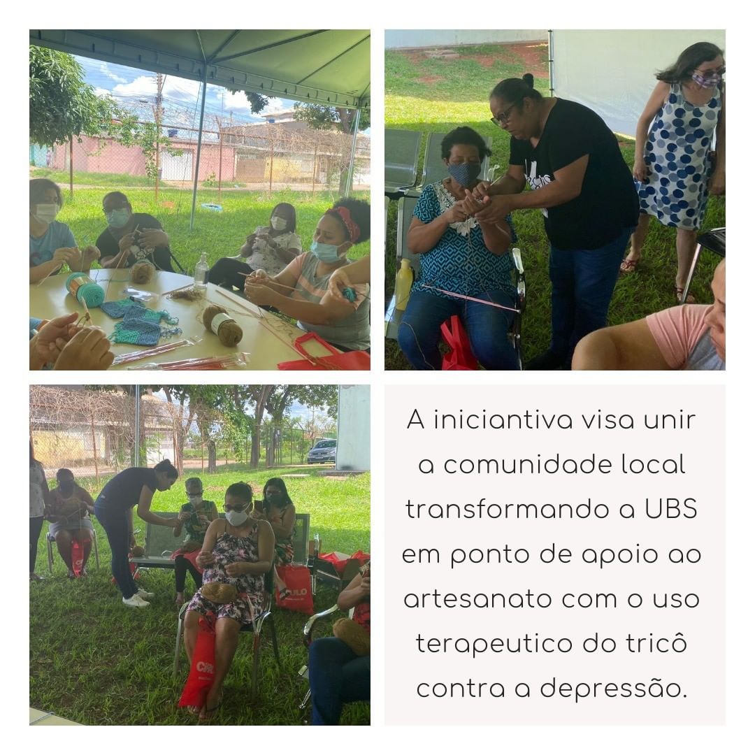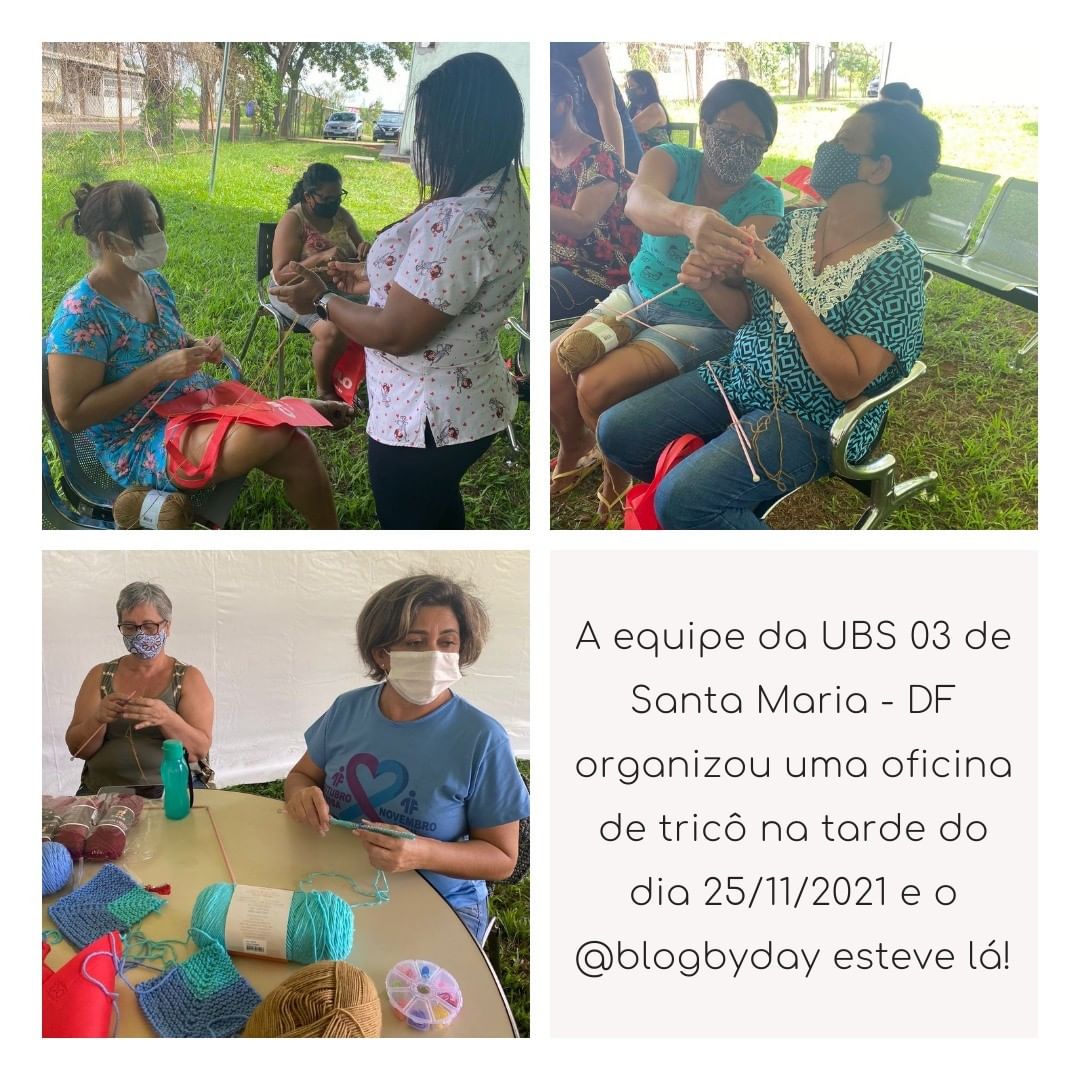 Teve Oficina de Tricô na UBS de Santa Maria no DF. Aqui vão algumas fotos da nossa tarde maravilhosa com direito a lanchinho, suco de fruta, ventinho pelo gramado e muitos risos enquanto o tricô rolava solto.